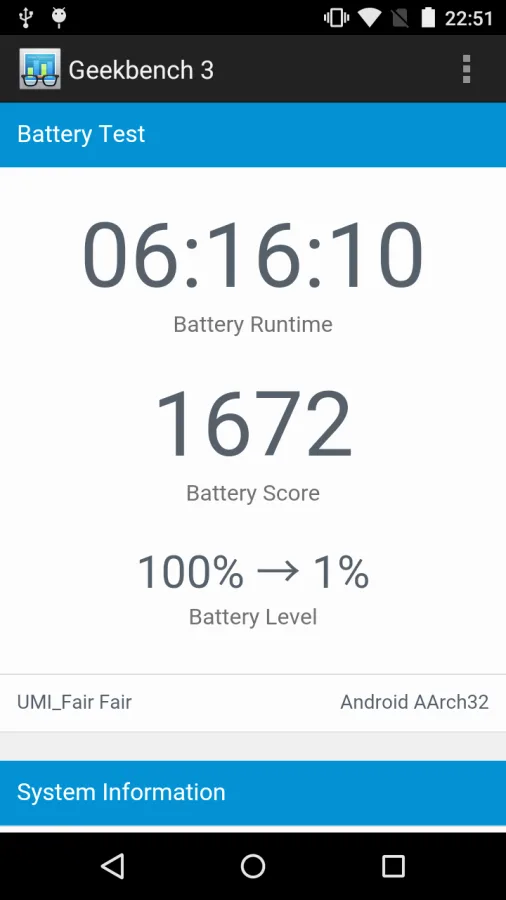 A bateria é um pouco pobre em UMI Fair com apenas 2000mAh, que também é perceptível na vida útil da bateria. Depois de uma boa semana de uso, eu tive que cobrar a Feira da IUM, mesmo como usuários moderados de smartphones, no final da tarde. Só quem usa seu smartphone acima da média, vai ter problemas com a bateria da Feira UMI.